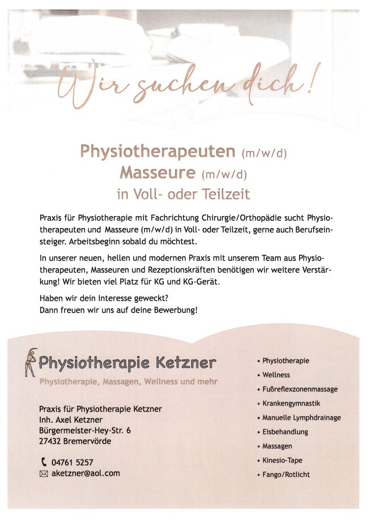 Wir stellen ein/suchen Physiotherapeuten m/w/d